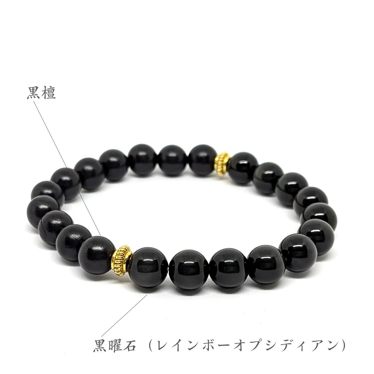 黒曜石 レインボーオプシディアン 黒檀 唐木 天然石ブレスレット 寿珠 御守腕輪 結縁 シンメトリーブレスレット メンズブレスレット 和風アクセサリー 和モダン 天然石アクセサリー 黒アクセサリー 8mmブレスレット 上品アクセサリー ハンドメイドアクセサリー ギフト プレゼント 誕生日 記念日 男性用アクセサリー レディースアクセサリー ユニセックス