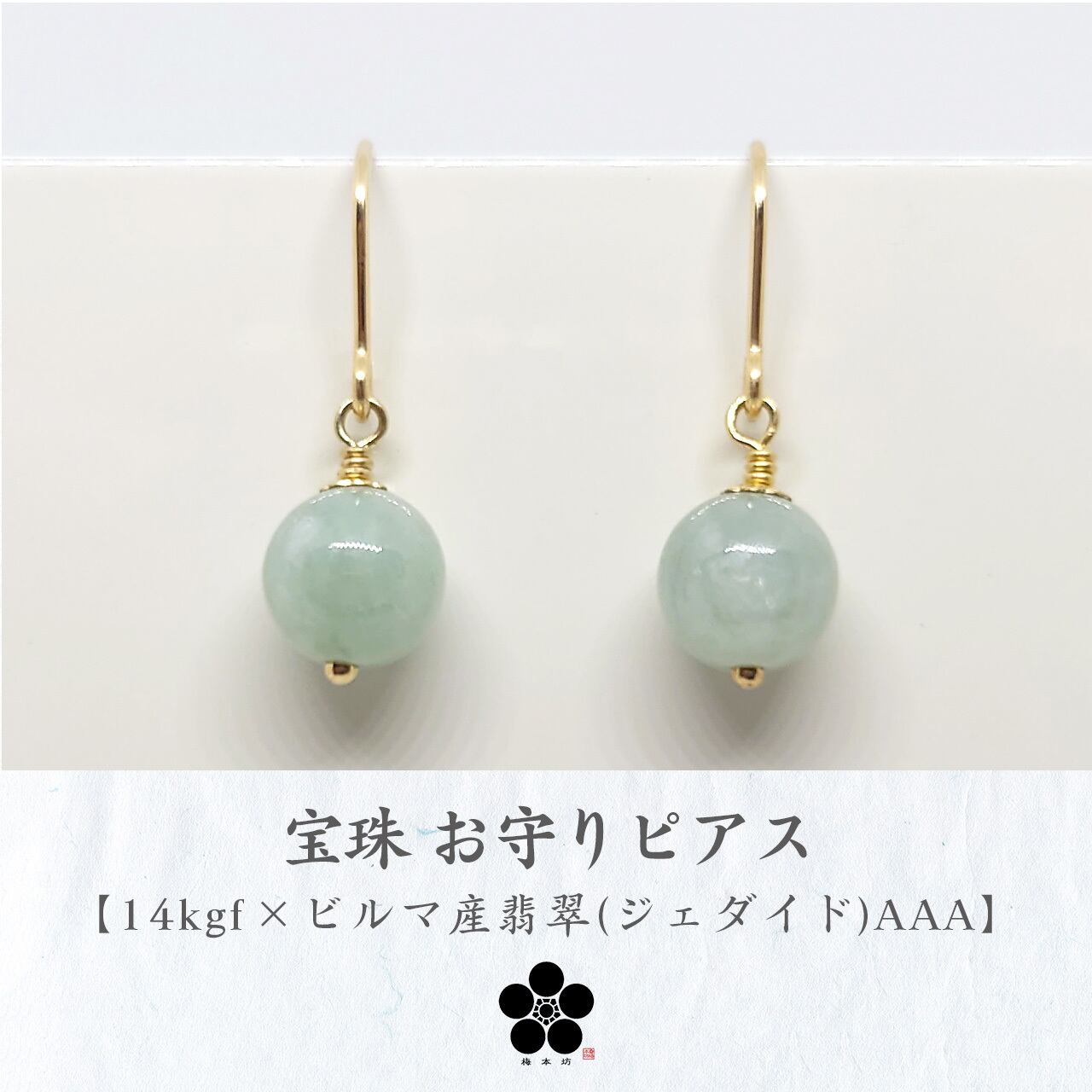 14kgf ビルマ産 翡翠AAAの宝珠 お守りピアス 硬玉 ジェダイド ジェイド 翡翠 ミャンマー 5月の誕生石 8㎜
