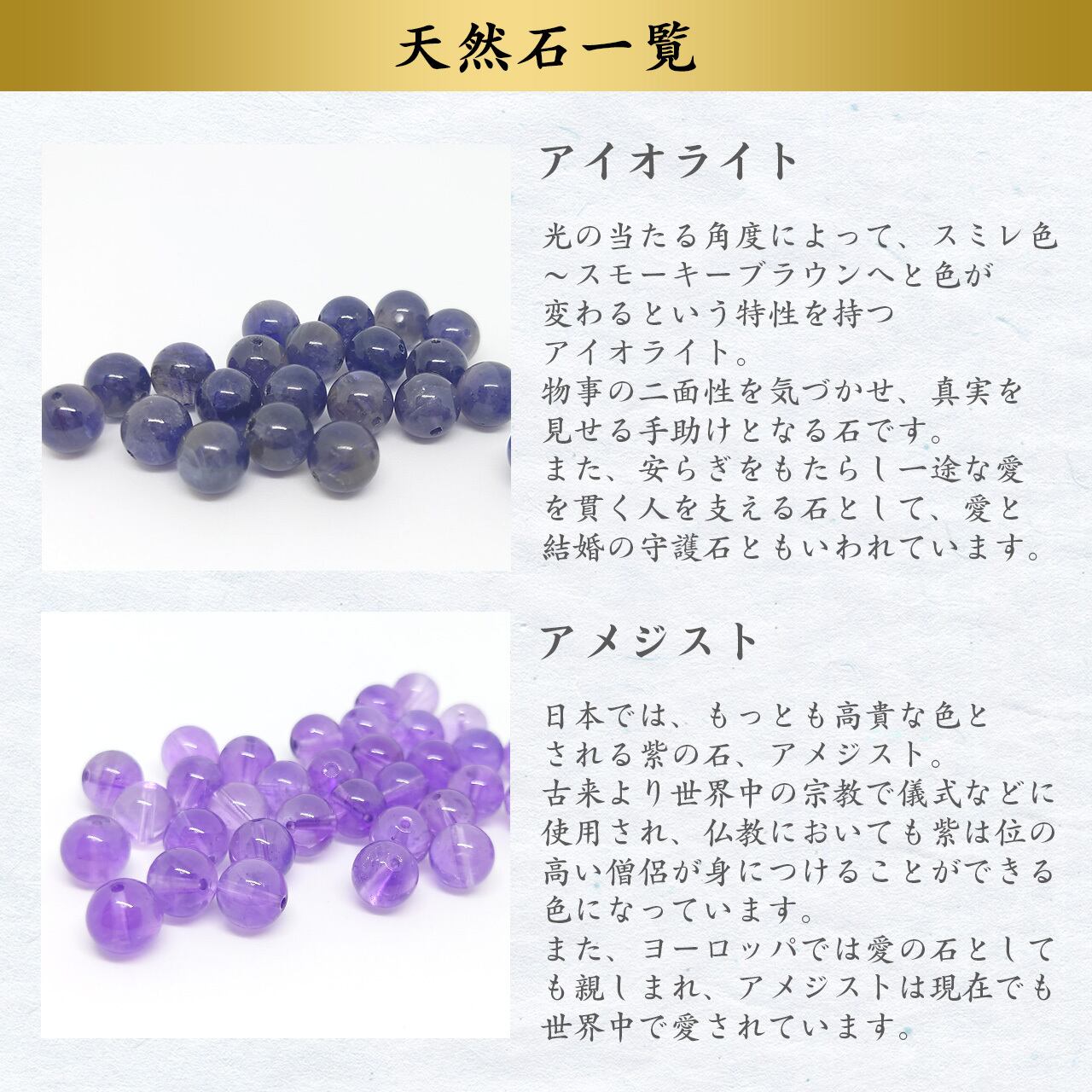 光の当たる角度によって、スミレ色~スモーキーブラウンへと色が変わるという特性を持つアイオライト。熱に弱く、加熱加工ができないため石本来の美しさを楽しめる天然石です。