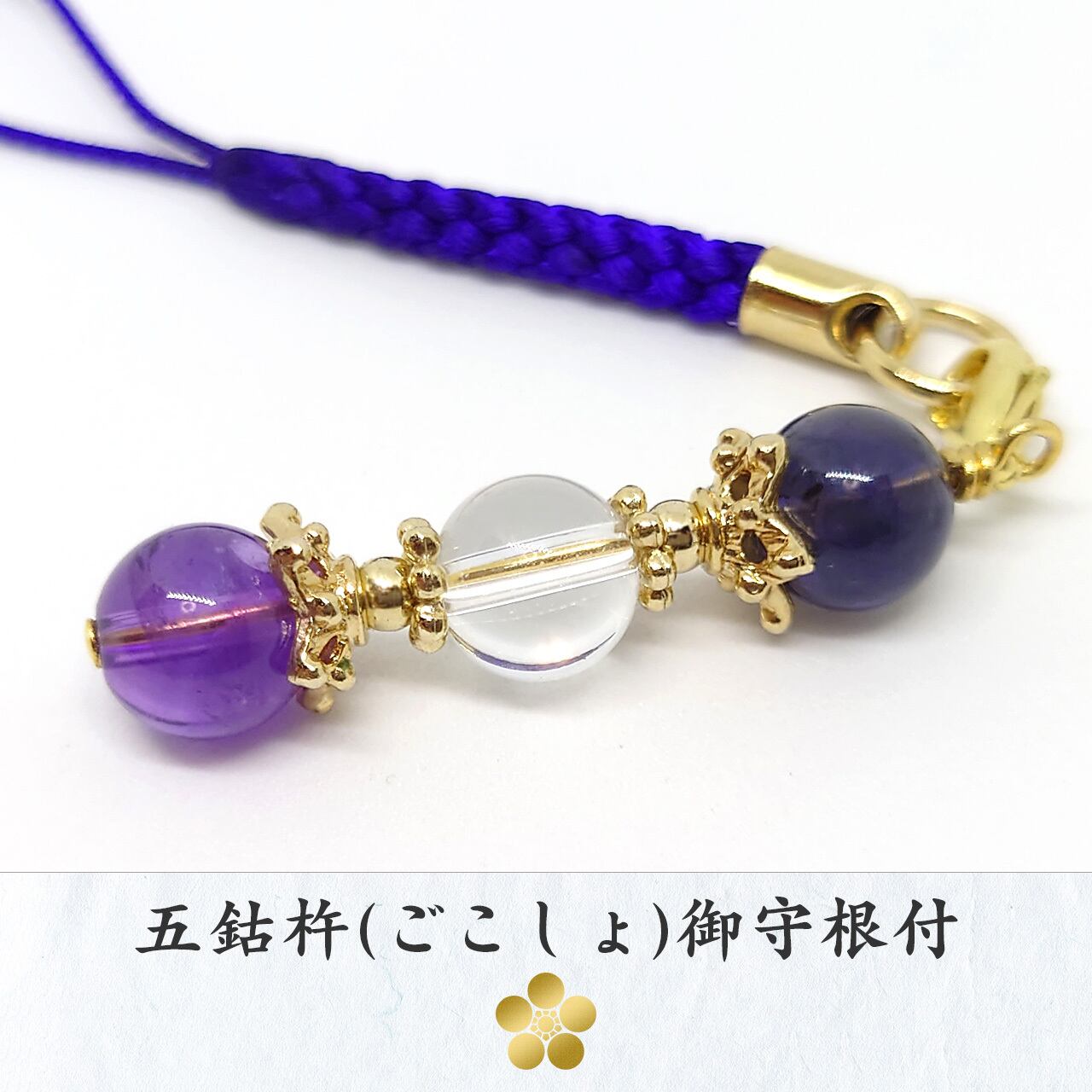 五鈷杵(ごこしょ)御守根付|お守りストラップ|アイオライト アメジスト|2月・3月の誕生石