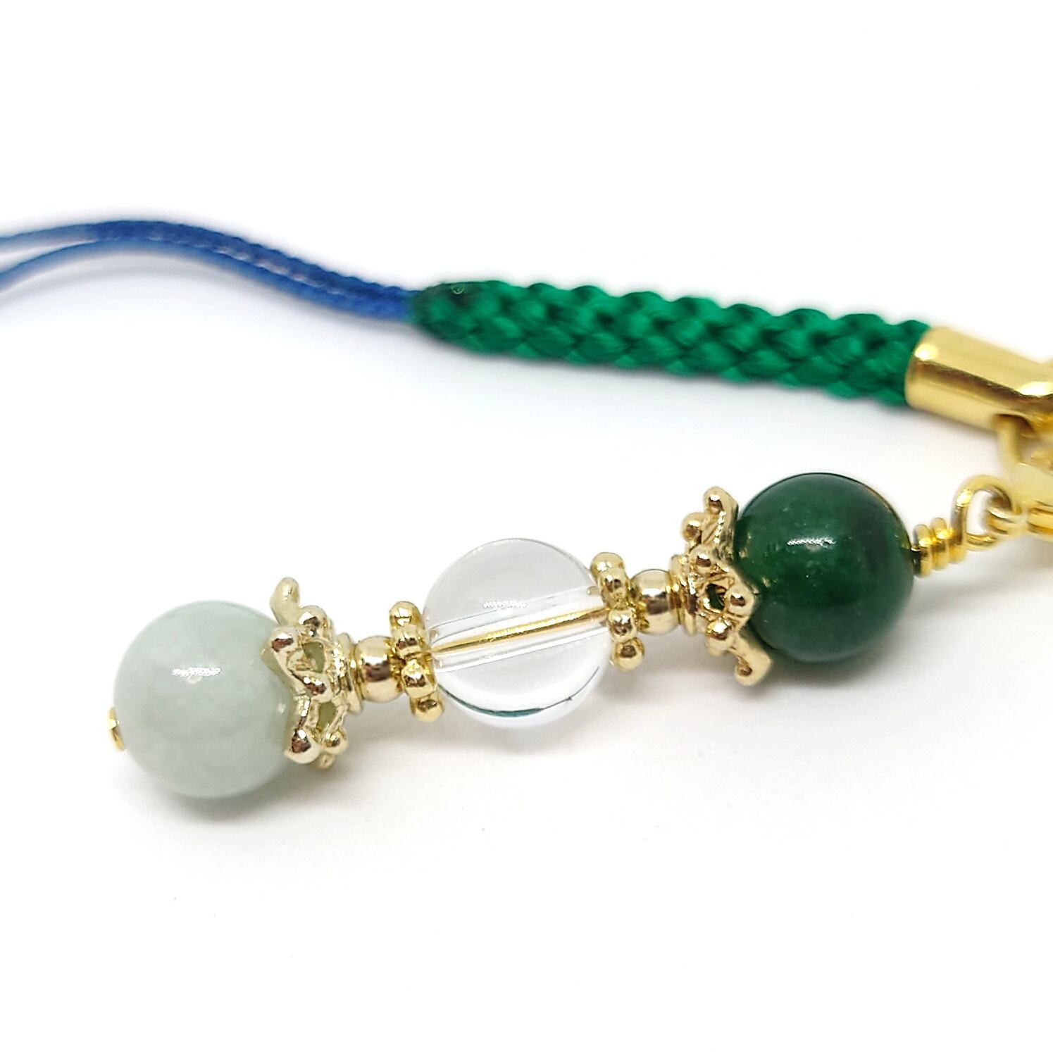 そこに深緑のインド産アベンチュリンを組み合わせ、透明感のあるグリーンの濃淡が美しく重なる仕上がりにまとめました。
