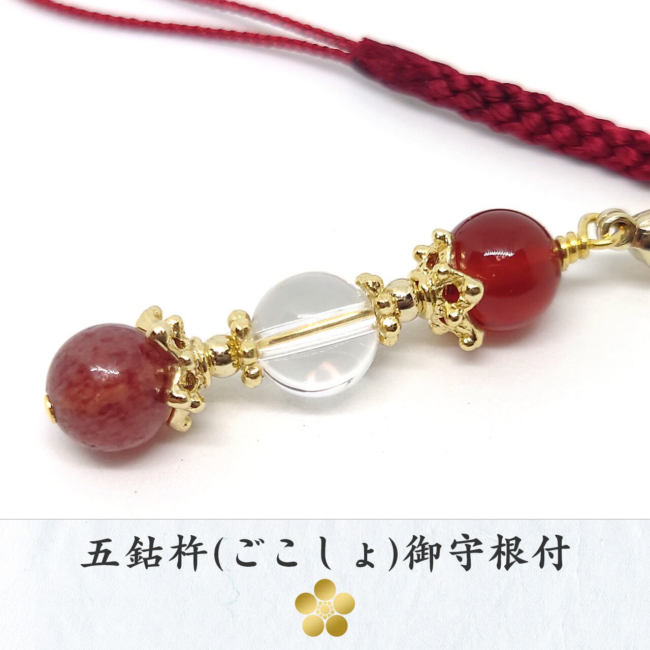 五鈷杵(ごこしょ)御守根付 | お守りストラップ | モスコバイト レッドアゲート | 赤瑪瑙