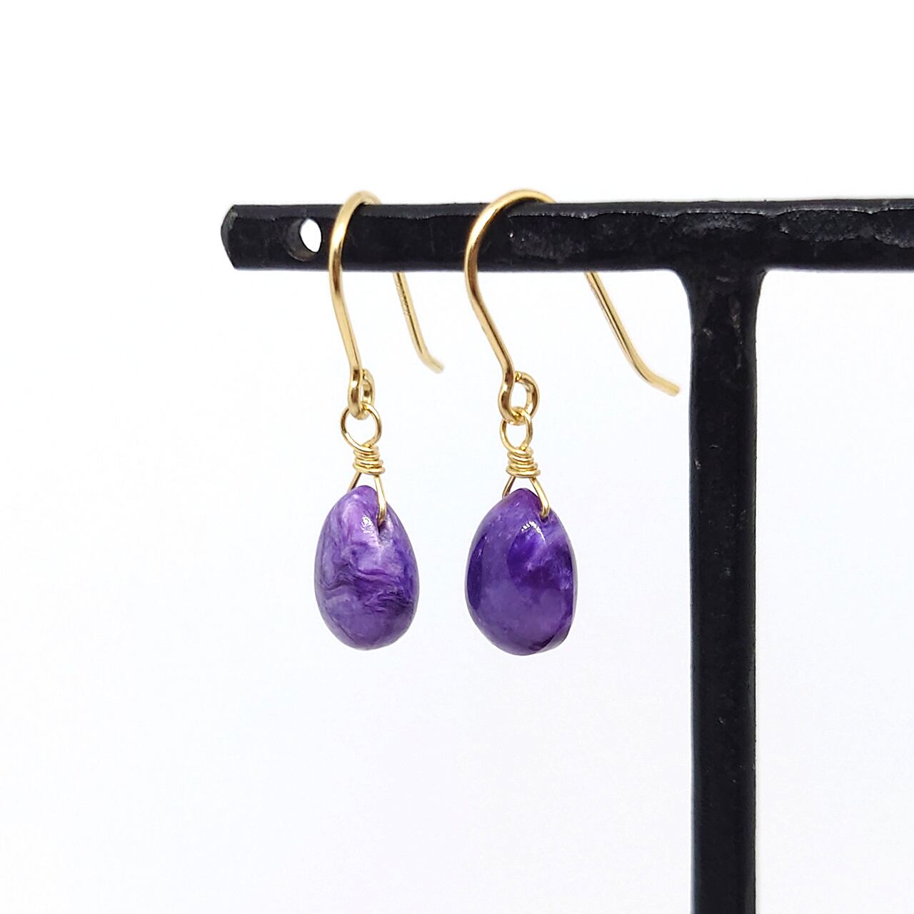 チャロアイト ロシア産 ドロップカット ピアス フックピアス ノンホールピアス イヤリング 14kgf 一粒 ファッションアクセサリー シンプルデザイン 天然石ピアス エレガント 通販 人気 トレンド 母の日ギフト 誕生日プレゼント 特別な日のアクセサリー 希少石 手作り 御祈祷保証書付き 露珠 ろしゅ
