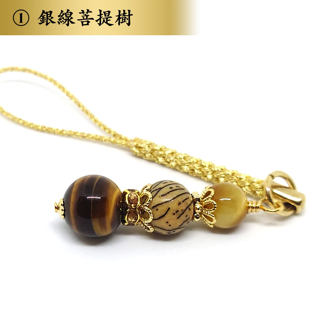 選べる菩提樹/唐木 イエロータイガーアイ ゴールデンタイガーアイのお守りストラップ 銀線/金剛菩提樹 黄金檀 金糸竹