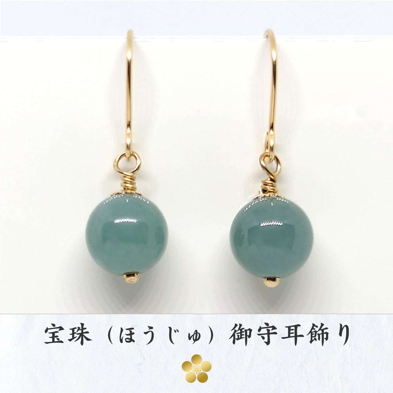 宝珠(ほうじゅ)御守耳飾り|お守りピアス|14kgf 青翡翠(ブルージェダイド)AAA|グアテマラ産 マンサーノ翡翠